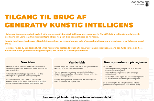 Du kan desuden downloade en plakat med Aabenraa Kommunes tilgang til brugen af kunstig intelligens her.