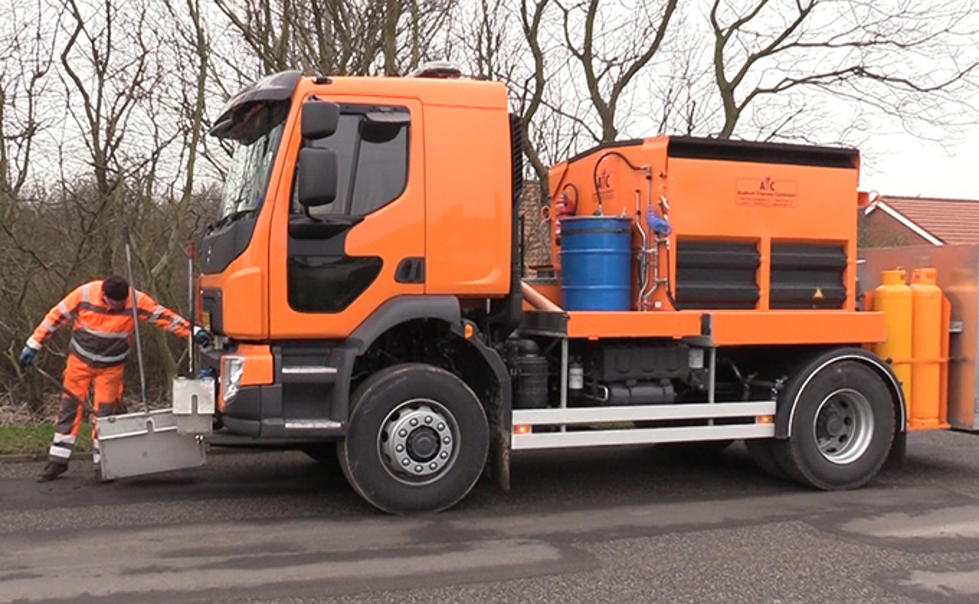 - Den nye asfaltmaskine er allerede taget i brug, og den bruges i arbejdet med at reparere asfalthuller i vejen.