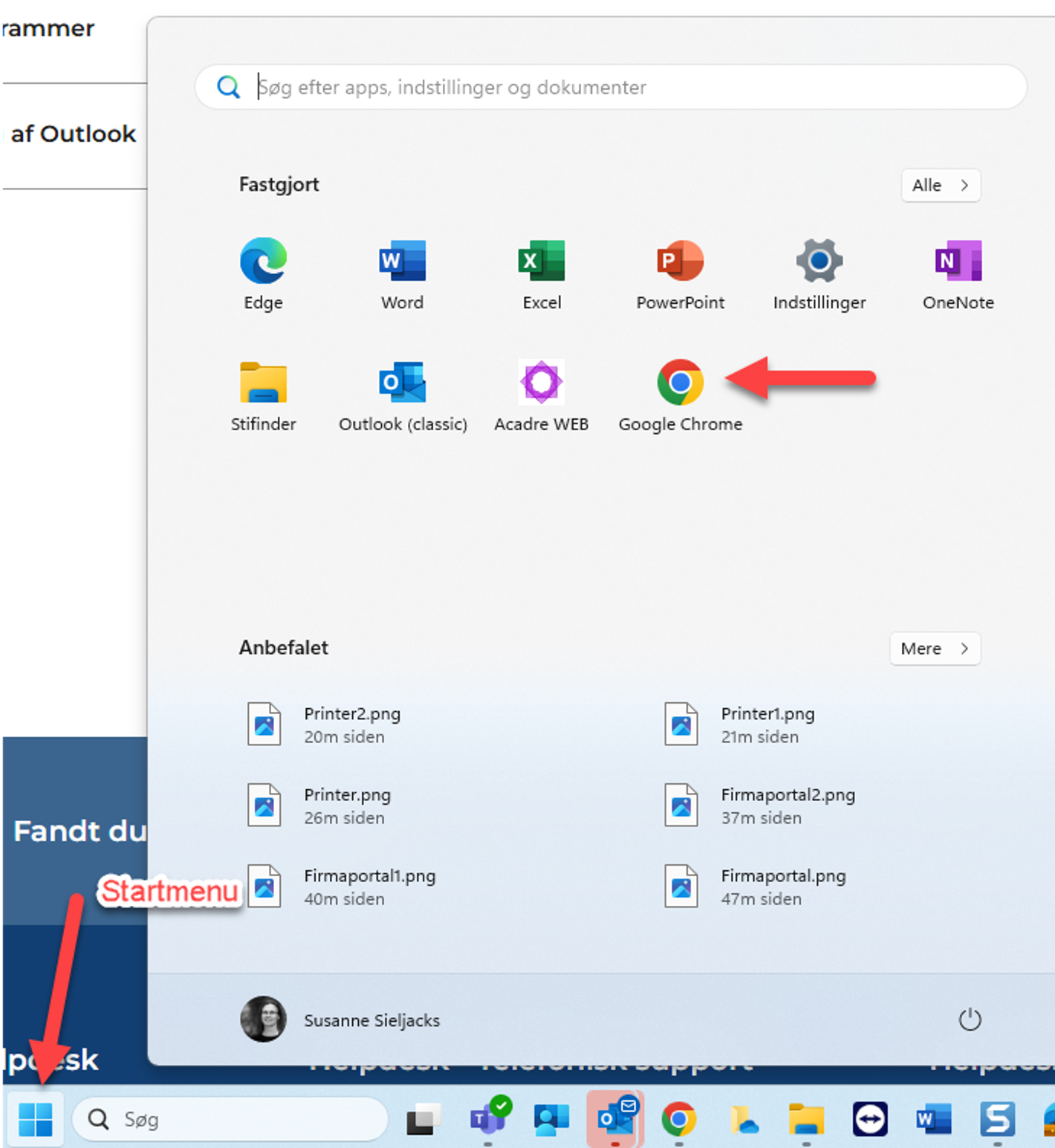Når et program er blevet tildelt til dig, eller hvis du selv har installeret et program fra Firmaportalen, så kan du her se, hvordan du finder programmerne på din PC.