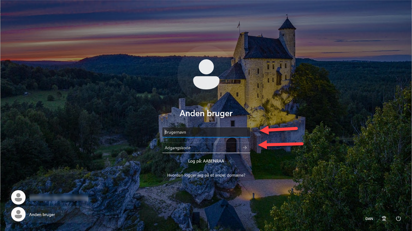 Fremfor at udfylde Adgangskoden under dit navn, skal du i stedet klikke på Anden bruger nede i venstre hjørne: