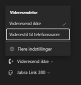 Du kan også vælge hvad der skal ske med opkaldet når du omdirigerer til telefonsvaren i feltet ”Vælg, hvad der sker, når opkald omdirigeres til telefonsvarer”.