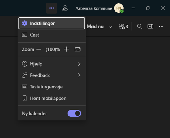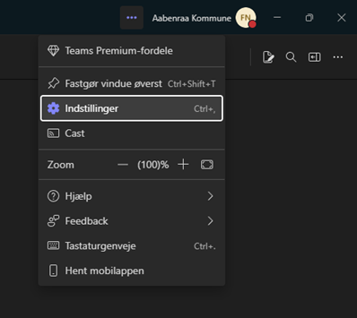 2. Klik på de tre prikker i højre hjørne, og vælg Indstillinger.