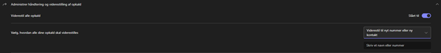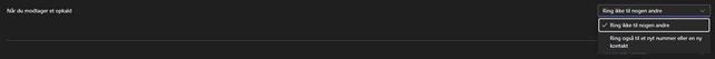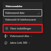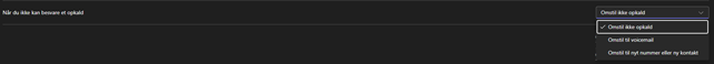 Hvis du vil viderestille opkald du ikke får besvaret, angiv til hvem i drop ned menuen ud for ”Når du ikke kan besvare et opkald”.