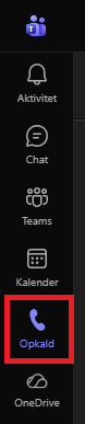 Når man vil ringe ud fra Teams skal man benytte fanen ”Opkald” man finder i højre side i Teams klienten.