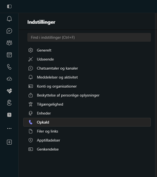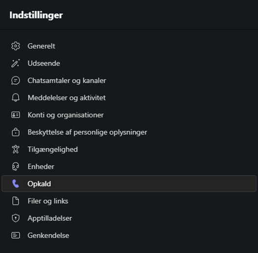 1. 3. Vælg Opkald i listen i venstre side.