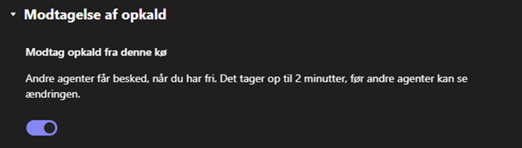 For at hoppe på eller af køen skal du sætte et flueben i Microsoft Teams klienten på din PC.